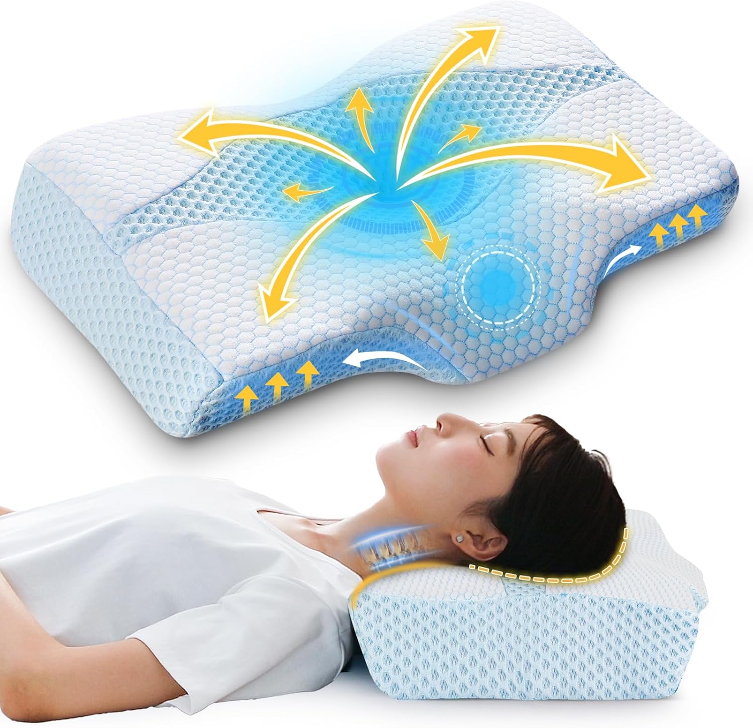 立方体の間に空気が流れるため通気性がよく、一晩中涼しく快適に過ごせる。グラフェンという炭素素材を配合し、抗菌性と防臭性を発揮。枕カバーは取り外して洗濯可能で、いつでも衛生的に使用できる。