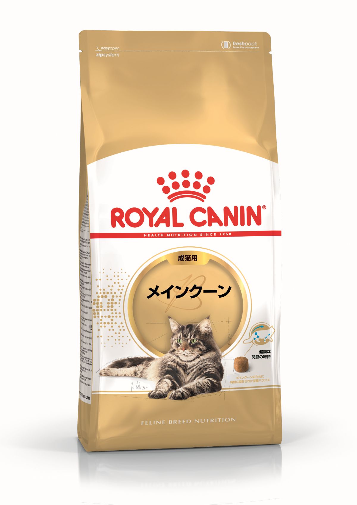大型種のメインクーンは、体重の増加により足腰に負担がかかることも。ロイヤルカナンのメインクーン専用フードには、関節のスムーズな動きをサポートするグルコサミン、コンドロイチン硫酸を配合している。